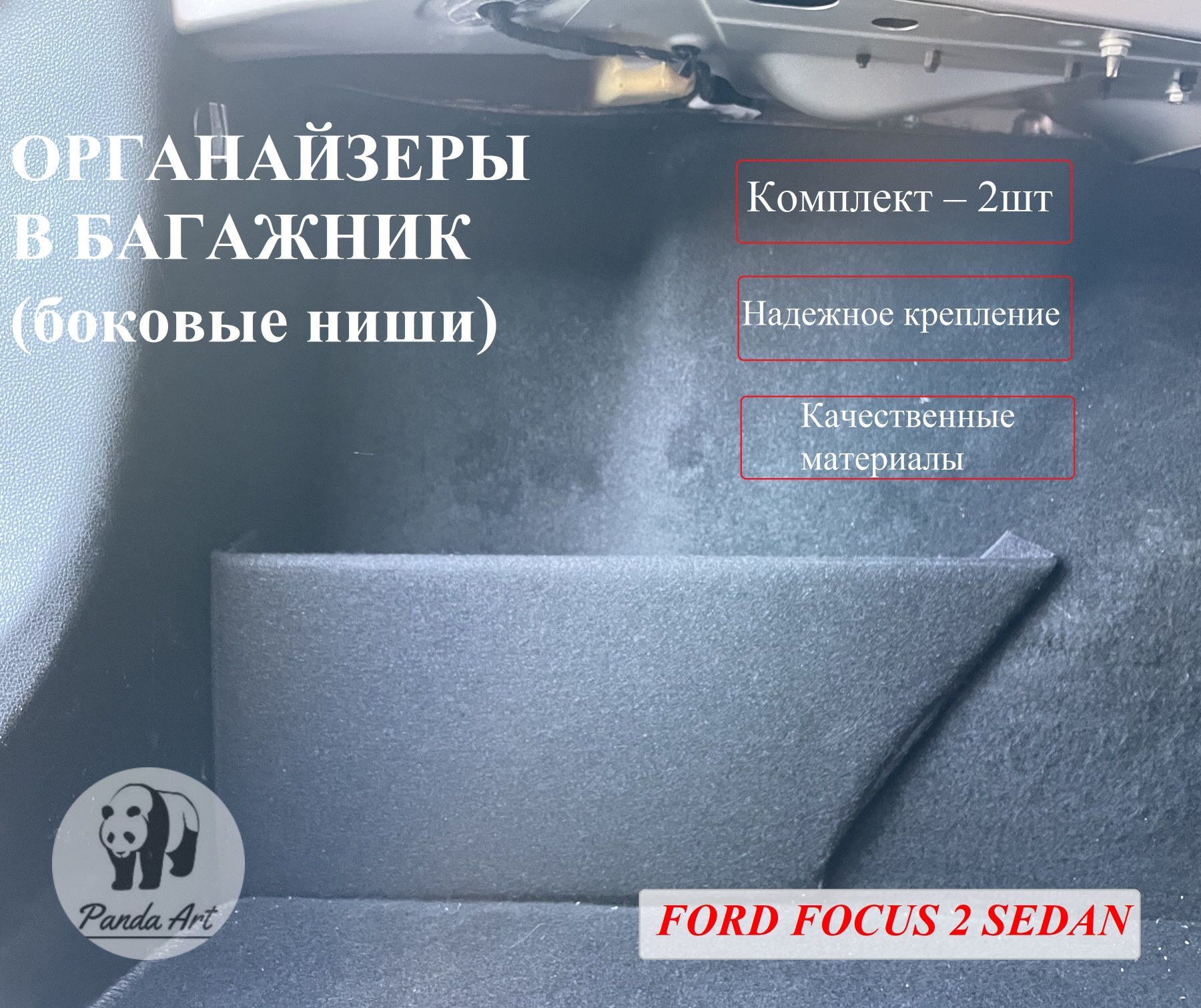 Устанавливается органайзер в левую и правую нишу багажника автомобиля Форд Фокус 2 (2004-2012).