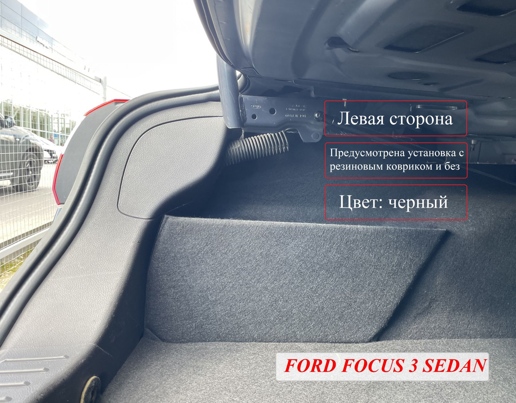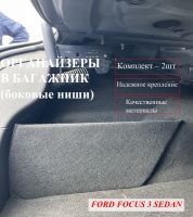 Устанавливается органайзер в левую и правую нишу багажника автомобиля Форд Фокус 3 седан (2012 - 2018 ).