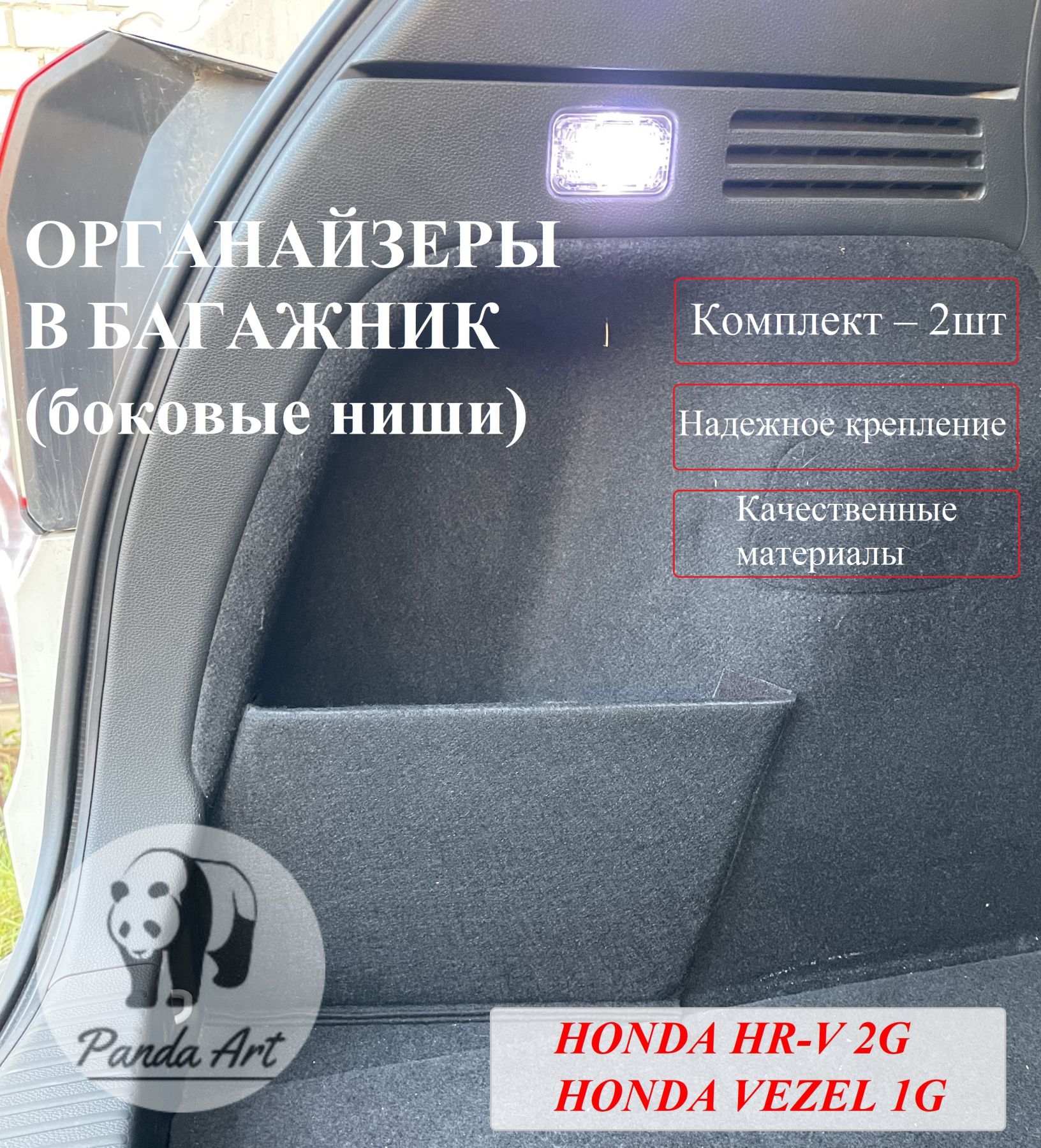 Устанавливается органайзер в левую и правую нишу багажника автомобиля Хонда НР-В 2 (2014-2021) / Везел 1 (2013-2021).