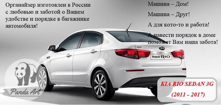 Органайзер в багажник разработан специально для автомобиля Kia Rio sedan 3G.