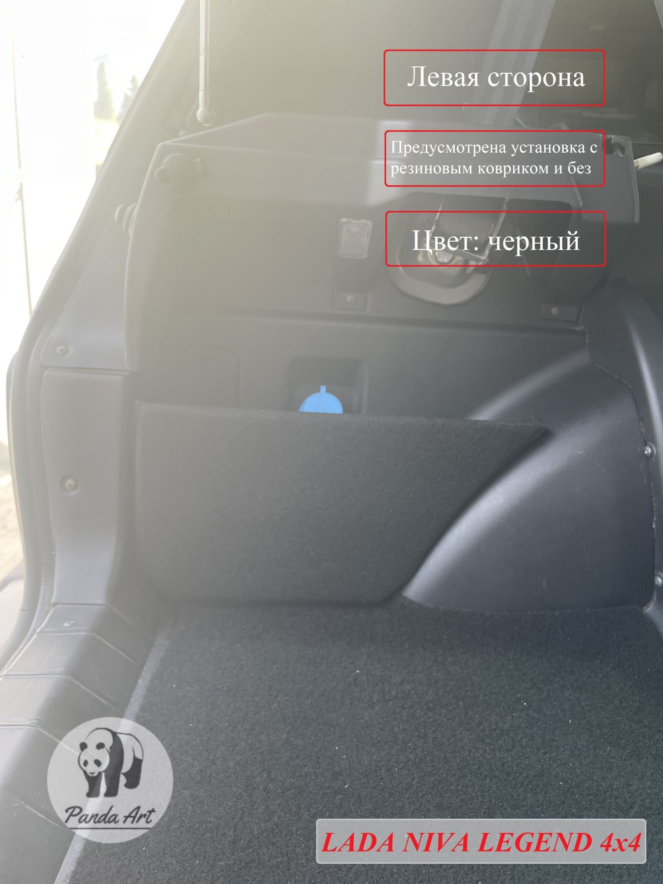 Устанавливается органайзер в левую и правую нишу багажника автомобиля Lada Niva Legend 4x4 (1977-...) (Для моделей с пластиковой обшивкой багажника).