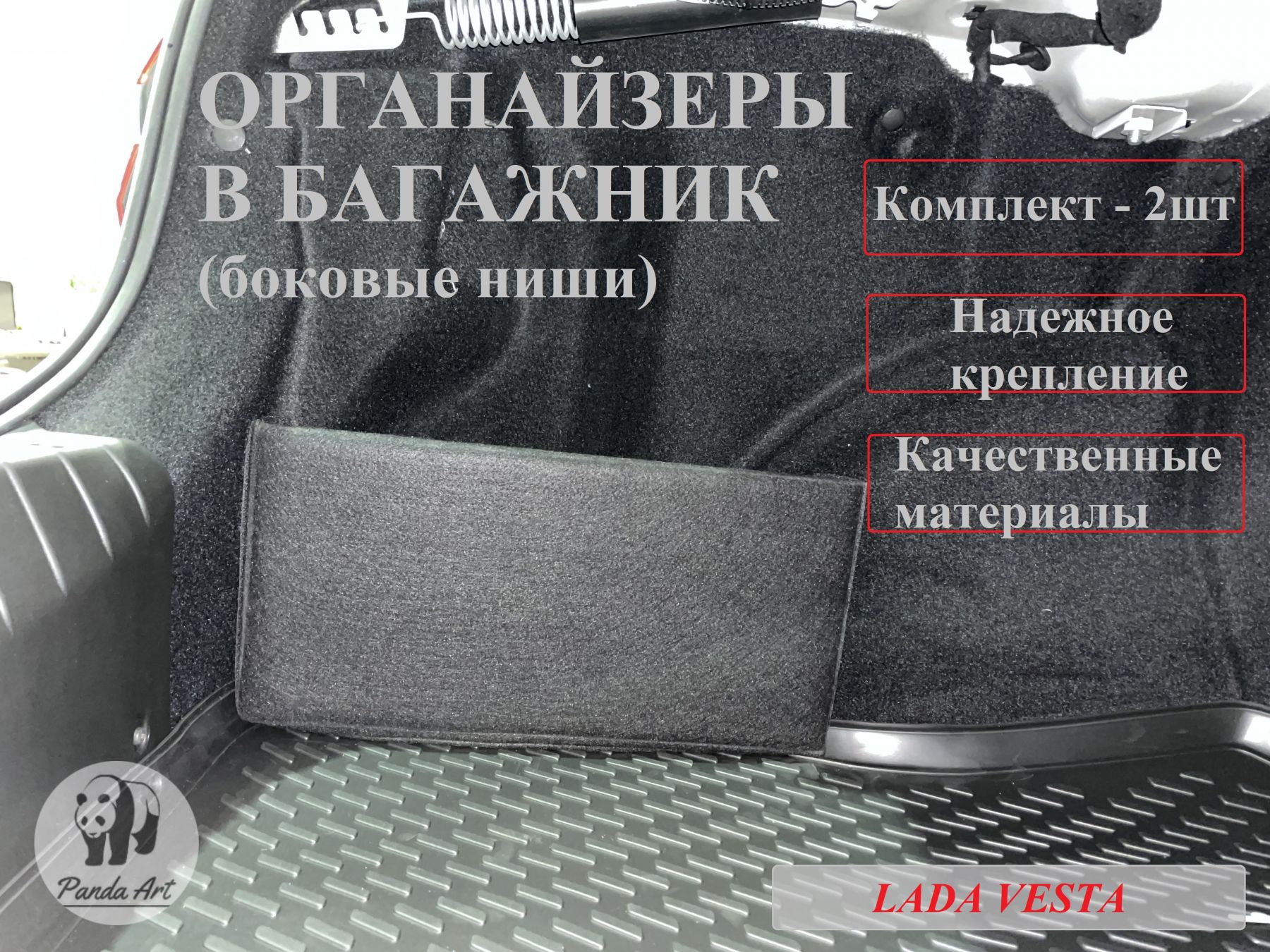 Устанавливается органайзер в левую и правую нишу багажника автомобиля Lada Vesta sedan (2015- ).