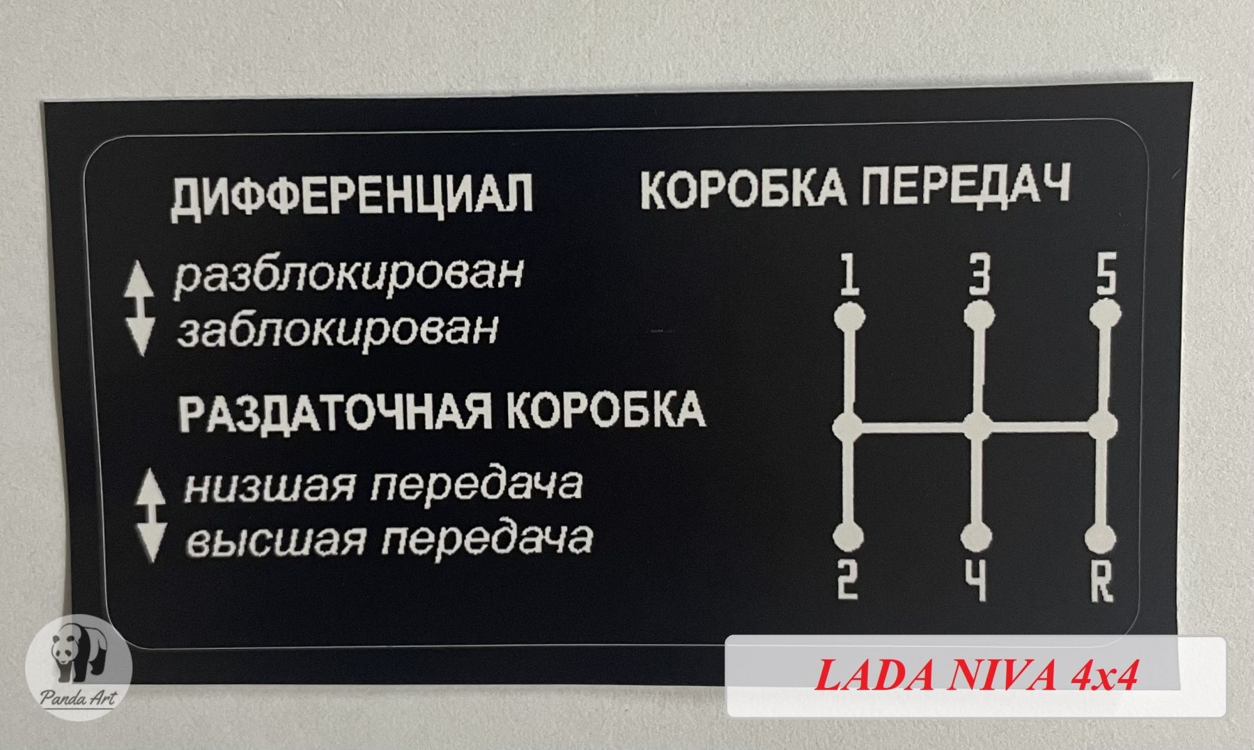 Наклейка управления раздаточной коробкой (дифференциалом) и коробкой переключения передач для автомобилей семейства Нива Lada 4*4, Urban, ВАЗ-2121-, ВАЗ-2131-