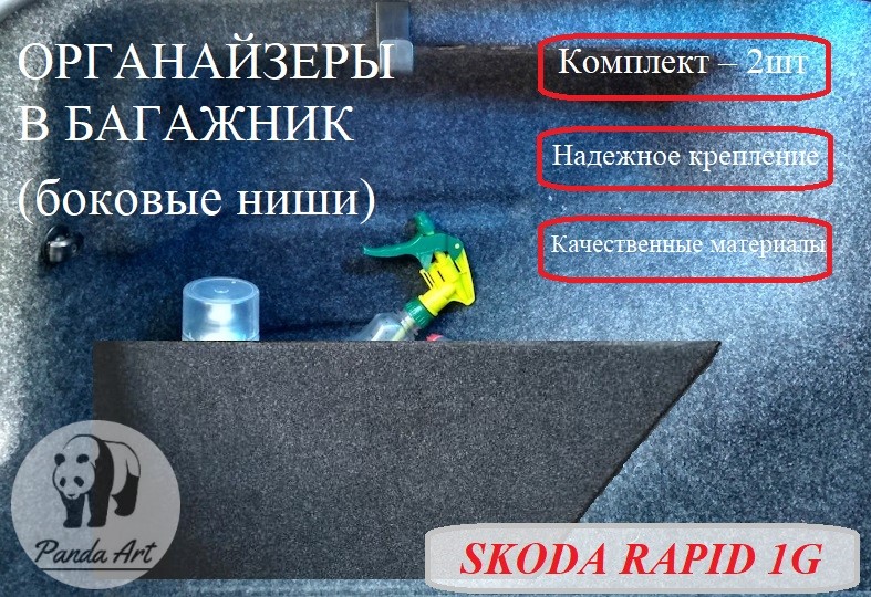 Устанавливается органайзер в левую и правую нишу багажника автомобиля Шкода Рапид 1 (2012- 2019).